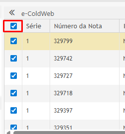 💡 Dica: Após preencher os filtros, clique em Pesquisar. Quando os resultados aparecerem, utilize o checkbox no topo da lista para selecionar todas as notas de uma vez.