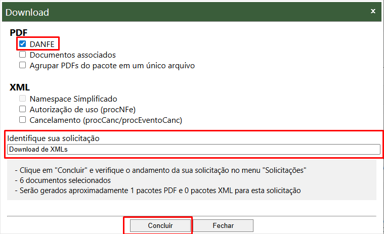 1. Marque a opção DANFE (dentro da categoria PDF).