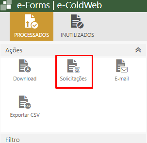 • Clique no botão Solicitações no menu de Ações.