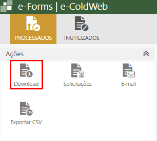 Com as notas selecionadas, vá até o menu superior em Ações e clique no ícone de Download.